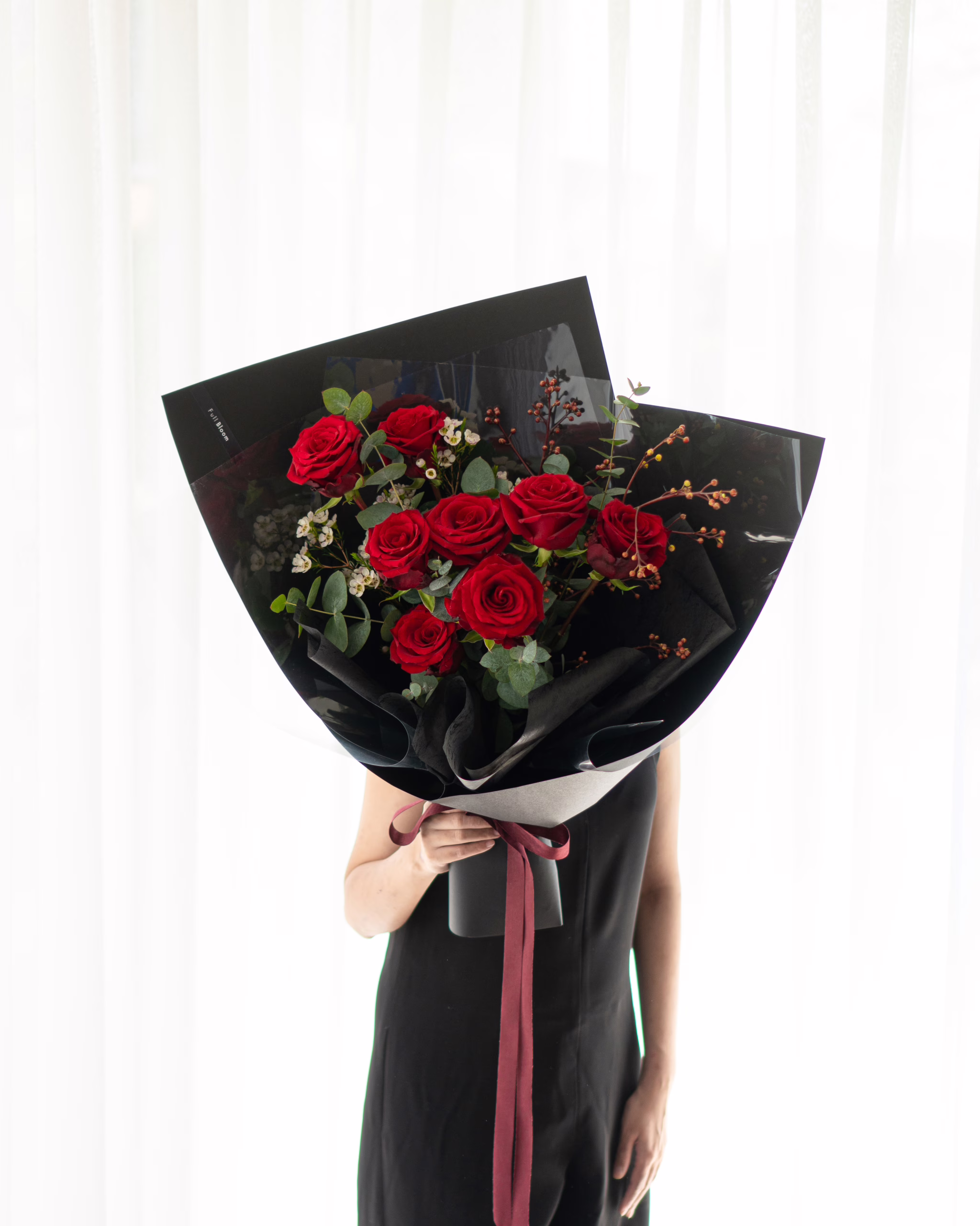 ช่อดอกไม้ Red Temptation ช่อกุหลาบสีแดงเพลิง สื่อถึงความรักที่เต็มไปด้วยความลึกลับและแรงดึงดูดที่ไม่อาจต้านทาน ความสวยงามของกุหลาบแดงที่ซ่อนอยู่ภายใต้กระดาษสีดำ เสมือนความรู้สึกที่ซ่อนอยู่ลึกในใจ เต็มไปด้วยเสน่ห์ที่ชวนให้หลงใหลไปกับทุกสัมผัส เหมาะสำหรับการแสดงความรักที่จริงจังและแรงกล้าทำให้คนพิเศษรู้สึกทึ่งและประทับใจ