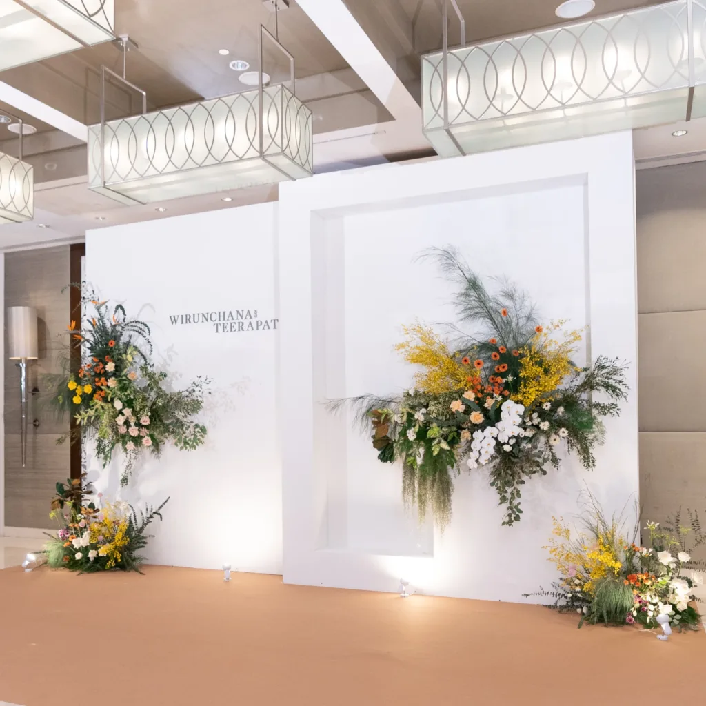 แพ็คเกจยอดนิยมของเราประกอบด้วย ดอกไม้สำหรับซุ้มดอกไม้ หรือการแต่งฉากถ่ายภาพ และฉากเวทีรูปแบบ ป้ายต้อนรับเข้างาน ดอกไม้ตกแต่งแกลลอรี่ ช่อสำหรับเจ้าสาว นอกจากนี้เรายังมีบริการอื่น ๆ ยอดนิยม อาทิ การตกแต่งโต๊ะรับรองแขกที่หรูหรา เหมาะสำหรับงานหมั้น หรืองานแต่งงานที่มีแขกประมาณ 100-150 ท่าน